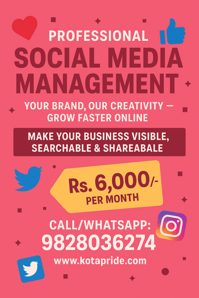 Kotapride Agency लेकर आया है एक ऐसा Social Media Marketing & Management Package जो आपके ब्रांड को दे नई पहचान, नए ग्राहक और बेहतर engagement।