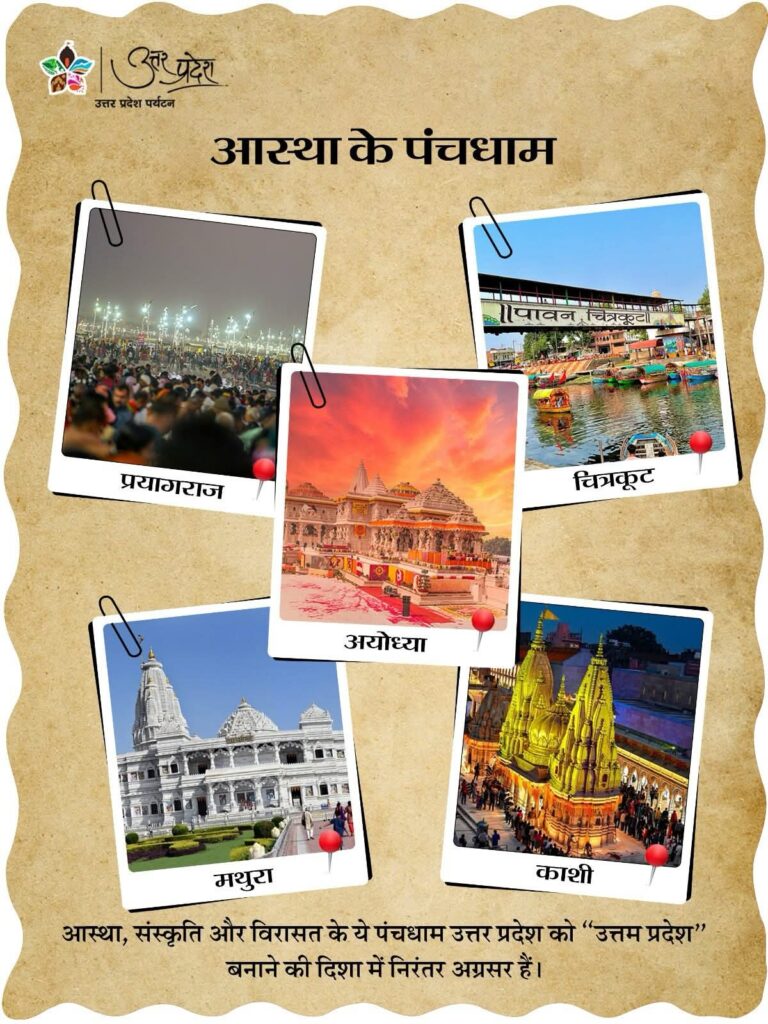 महाकुम्भ 2025 के ऐतिहासिक एवं सफल आयोजन ने प्रदेश की आध्यात्मिक चेतना को वैश्विक पहचान दिलाई है, जबकि अयोध्या, काशी, मथुरा, प्रयागराज और चित्रकूट जैसे पंचधाम हमारी सनातन परंपरा और अटूट श्रद्धा के अनुपम धाम हैं।